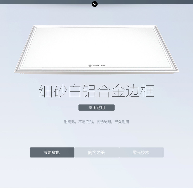 ◆ 采用側(cè)發(fā)光技術(shù),發(fā)光均勻,明亮舒適,照射光線均勻柔和,為整潔明亮的家庭照明提供足夠亮度的潔凈光感,讓污垢無(wú)處可逃。