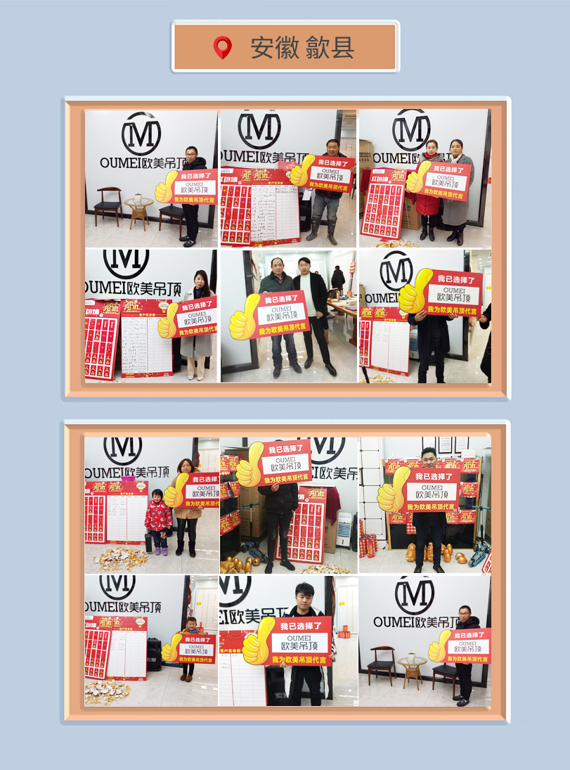 3月,歐美吊頂安徽歙縣專(zhuān)賣(mài)店開(kāi)展了“2019開(kāi)門(mén)紅--新品全城搶”的聯(lián)盟活動(dòng),數(shù)多業(yè)主前往歐美吊頂歙縣專(zhuān)賣(mài)店為自己的新家量身打造一套“新衣”,歐美的產(chǎn)品也受到了當(dāng)?shù)叵M(fèi)者的一致好評(píng),在現(xiàn)場(chǎng)留下了合影。從“我為歐美吊頂代言”到“讓歐美服務(wù)億萬(wàn)中國(guó)家”,感謝歙縣消費(fèi)者對(duì)歐美吊頂?shù)男湃闻c認(rèn)可!